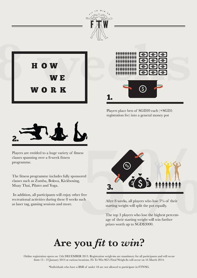 Fit To Win (FTW) is Singapore’s first social weight loss challenge where participants can lose weight and get fit via a revolutionary betting and competition system.
